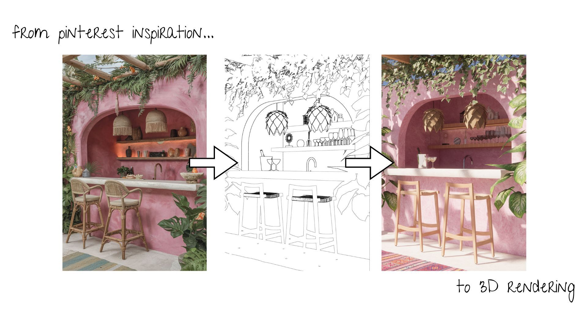 Now I know this week is a little different than usual because it's not *techhhhnically* an interior design project. BUT, I was really excited to try a different approach with this design I found on Pinterest and use all Enscape assets to complete the space.