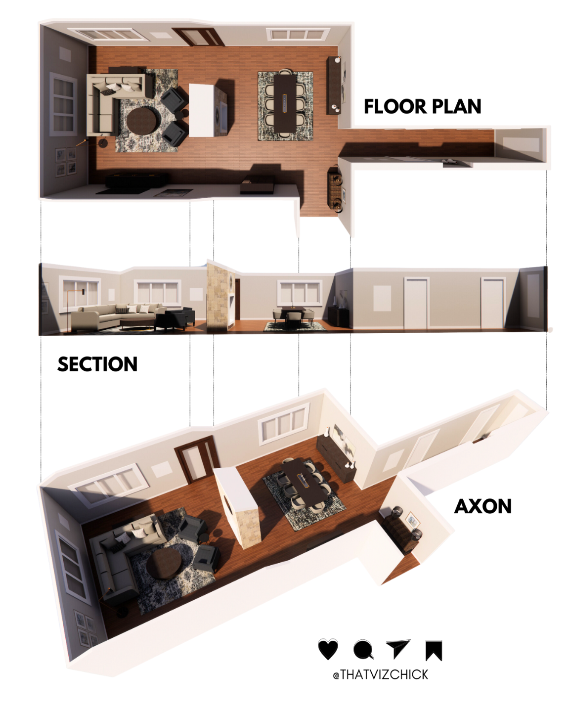 With The Visualization Blueprint For Designers, you'll be able to master the basics of SketchUp, Enscape, & Layout quickly & clearly to create models & presentations like this faster than ever.